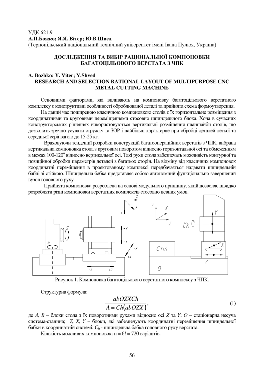 | Bibliographic reference (2015): | Божко А. П., Вітер Я. Я., Швед Ю. В. Дослідження та вибір раціональної компоновки багатоцільового верстата з ЧПК // Матеріали ⅩⅣ МНТКМУС „Актуальні задачі сучасних технологій“, Тернопіль, 11-12 грудня 2025. 2025. С. 56. |