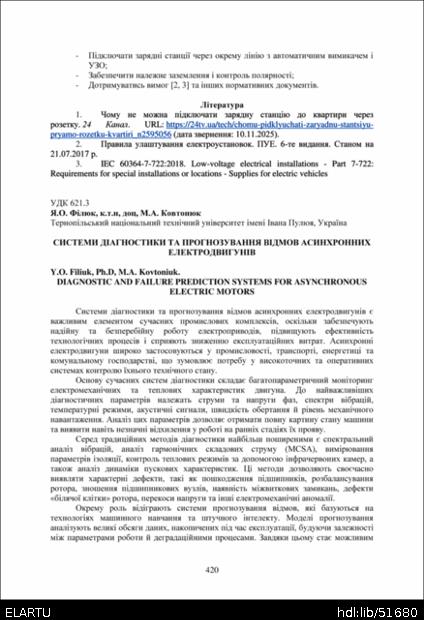| Bibliographic reference (2015): | Філюк Я. О., Ковтонюк М. А. Системи діагностики та прогнозування відмов асинхронних електродвигунів // Матеріали ⅩⅣ МНТКМУС „Актуальні задачі сучасних технологій“, Тернопіль, 11-12 грудня 2025. 2025. С. 420–421. |