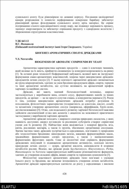 | Bibliographic citation (APA): | Nesvavolia, V. S. (2025). Biohenez aromatychnykh spoluk drizhdzhamy [Biogenesis of aromatic compounds by yeast]. Proceedings of the ⅩⅣ International Scientific and Technical Conference of Young Scientists and Students “Current Issues of Modern Technologies”, 11-12 December 2025, Ternopil, 428-430. PE Palianytsia V.A.. [in Ukrainian]. |