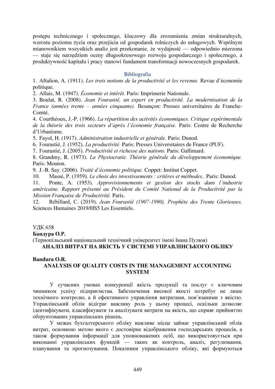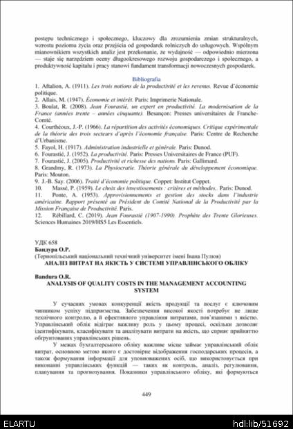 | Bibliographic reference (2015): | Бандура О. Р. Аналіз витрат на якість у системі управлінського обліку // Матеріали ⅩⅣ МНТКМУС „Актуальні задачі сучасних технологій“, Тернопіль, 11-12 грудня 2025. 2025. С. 449–451. |