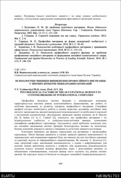 | Інші назви: | Psychological factors of the occupational burnout in customs brokers of international companies |