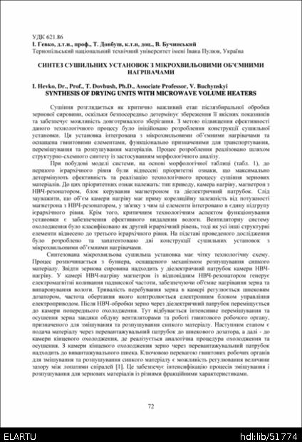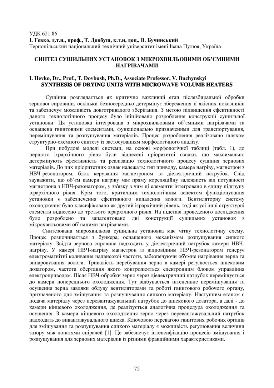 | Bibliographic citation (APA): | Hevko, I., Dovbush, T., & Buchynskyi, V. (2025). Syntez sushylnykh ustanovok z mikrokhvylovymy obiemnymy nahrivachamy [Synthesis of drying units with microwave volume heaters]. Proceedings of the ⅩⅣ International Scientific and Technical Conference of Young Scientists and Students “Current Issues of Modern Technologies”, 11-12 December 2025, Ternopil, 72-73. PE Palianytsia V.A.. [in Ukrainian]. |