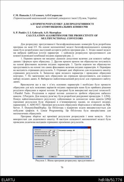 Bibliographic reference (2015): Паньків С. М., Головач І. І., Скоропляс А. О. Алгоритм розрахунку для продуктивності багатофункціональних конвеєрів // Матеріали ⅩⅣ МНТКМУС „Актуальні задачі сучасних технологій“, Тернопіль, 11-12 грудня 2025. 2025. С. 76–77.
