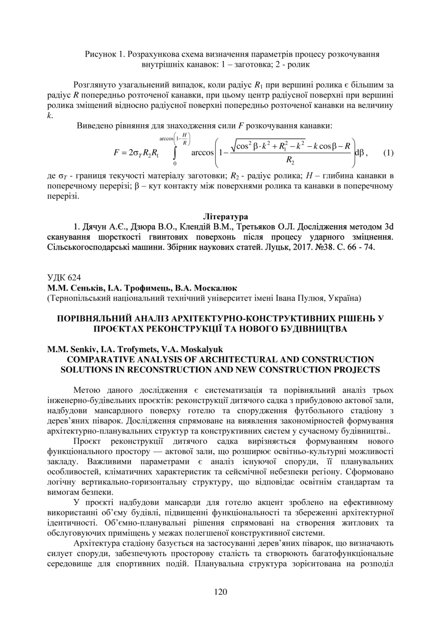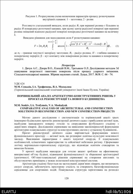 | Bibliographic reference (2015): | Сеньків М. М., Трофимець І. А., Москалюк В. А. Порівняльний аналіз архітектурно-конструктивних рішень у проєктах реконструкції та нового будівництва // Матеріали ⅩⅣ МНТКМУС „Актуальні задачі сучасних технологій“, Тернопіль, 11-12 грудня 2025. 2025. С. 120–121. |
