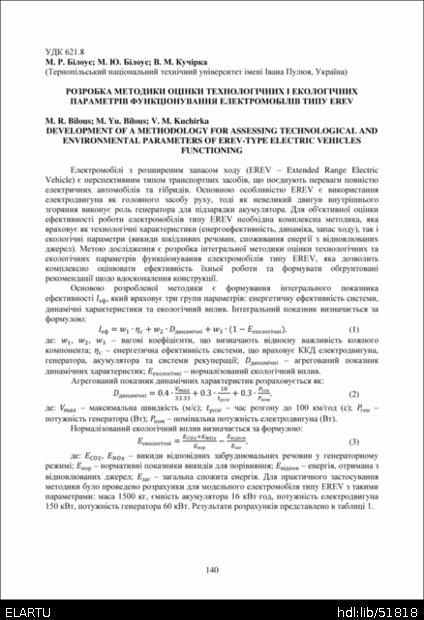 Bibliographic reference (2015): Білоус М. Р., Білоус М. Ю., Кучірка В. М. Розробка методики оцінки технологічних і екологічних параметрів функціонування електромобілів типу EREV // Матеріали ⅩⅣ МНТКМУС „Актуальні задачі сучасних технологій“, Тернопіль, 11-12 грудня 2025. 2025. С. 140–141.