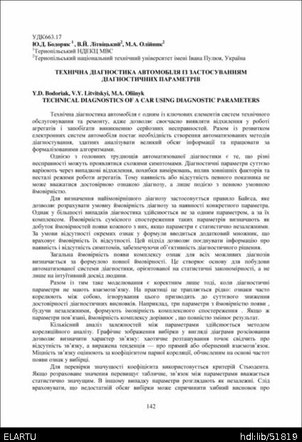 | Bibliographic reference (2015): | Бодоряк Ю. Д., Літвіцький В. Й., Олійник М. А. Технічна діагностика автомобіля із застосуванням діагностичних параметрів // Матеріали ⅩⅣ МНТКМУС „Актуальні задачі сучасних технологій“, Тернопіль, 11-12 грудня 2025. 2025. С. 142–143. |