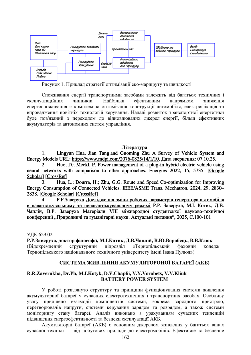 | Bibliographic citation (APA): | Zaverukha, R. R., Kotyk, M. I., Chaplii, D. V., Vorobets, V. Y., & Kliuk, V. V. (2025). Systema zhyvlennia akumuliatoronoi batarei (AKB) [Battery power system]. Proceedings of the ⅩⅣ International Scientific and Technical Conference of Young Scientists and Students “Current Issues of Modern Technologies”, 11-12 December 2025, Ternopil, 162-164. PE Palianytsia V.A.. [in Ukrainian]. |