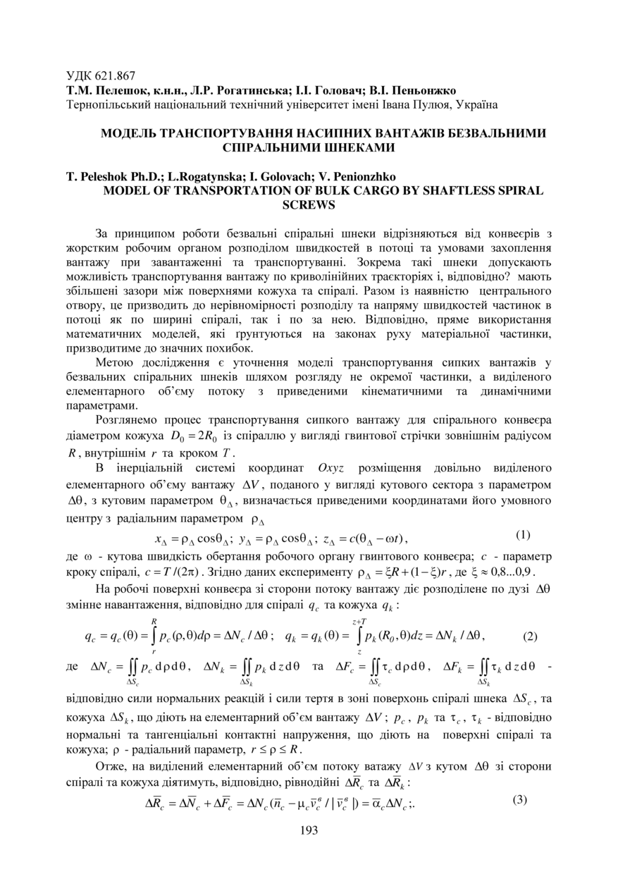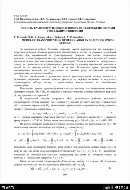 | Bibliographic citation (APA): | Peleshok, T., Rogatynska, L., Golovach, I., & Penionzhko, V. (2025). Model transportuvannia nasypnykh vantazhiv bezvalnymy spiralnymy shnekamy [Model of transportation of bulk cargo by shaftless spiral screws]. Proceedings of the ⅩⅣ International Scientific and Technical Conference of Young Scientists and Students “Current Issues of Modern Technologies”, 11-12 December 2025, Ternopil, 193-194. PE Palianytsia V.A.. [in Ukrainian]. |