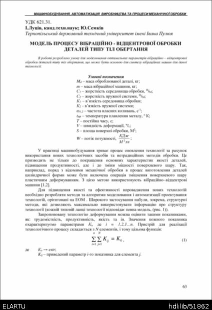 | Bibliographic citation (APA): | Lutsiv, I., & Semkiv, Yu. (2004). Model protsesu vibratsiino - vidtsentrovoi obrobky detalei typu til obertannia [The simulation of vibrative machiniry of rotative-type ports]. Scientific Journal of the Ternopil State Technical University, 9(4), 63-68. TSTU. [in Ukrainian]. |