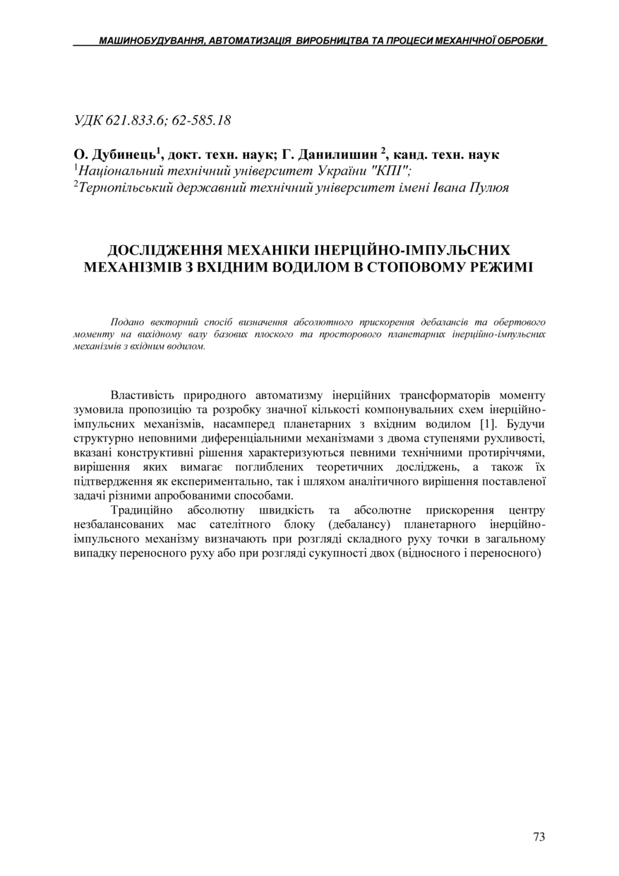 | Títol: | Дослідження механіки інерційно-імпульсних механізмів з вхідним водилом в стоповому режимі |