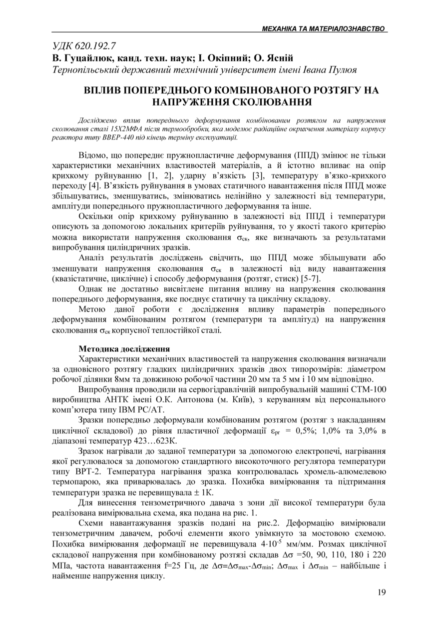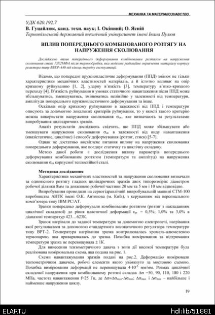 | Bibliographic citation (APA): | Hutsaylyuk, V., Okipny, I., & Yasniy, O. (2004). Vplyv poperednoho kombinovanoho roztiahu na napruzhennia skoliuvannia [Influence of preliminary combined deformation by a tensile on cleavage stress]. Scientific Journal of the Ternopil State Technical University, 9(4), 19-25. TSTU. [in Ukrainian]. |