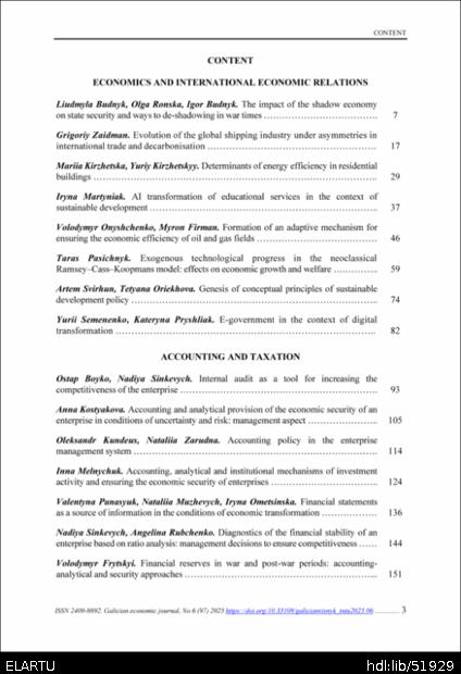 | Bibliographic citation (CHICAGO): | Zmist [Content]. Galician economic journal (Tern.), vol. 97, no 6, pp. 3-6 [in Ukrainian]. |