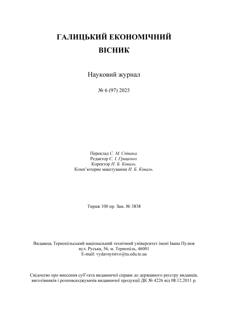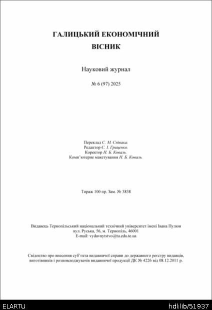 | Розташовується у зібраннях: | Галицький економічний вісник, 2025, № 6 (97) |