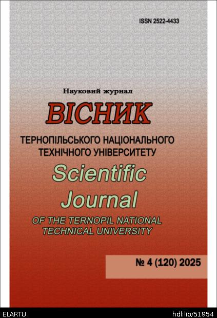 | Is part of: | Вісник Тернопільського національного технічного університету, 4 (120), 2025 Scientific Journal of the Ternopil National Technical University, 4 (120), 2025 |