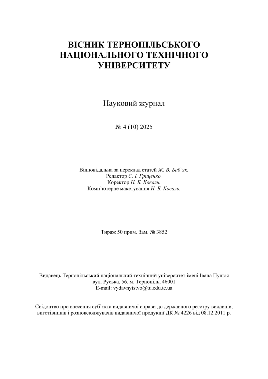 | Є частиною видання: | Вісник Тернопільського національного технічного університету, 4 (120), 2025 Scientific Journal of the Ternopil National Technical University, 4 (120), 2025 |
